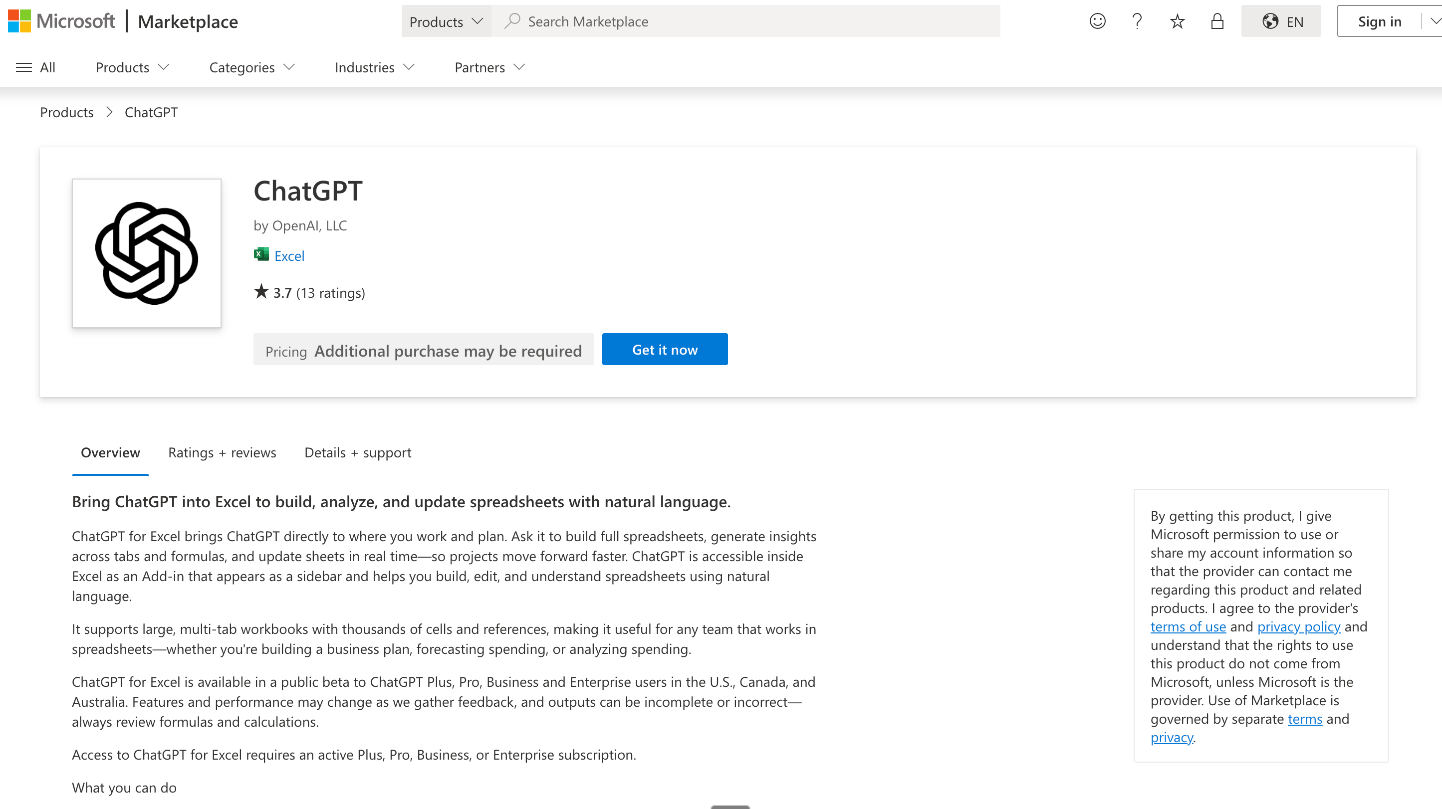 ChatGPT is also on the Microsoft Marketplace