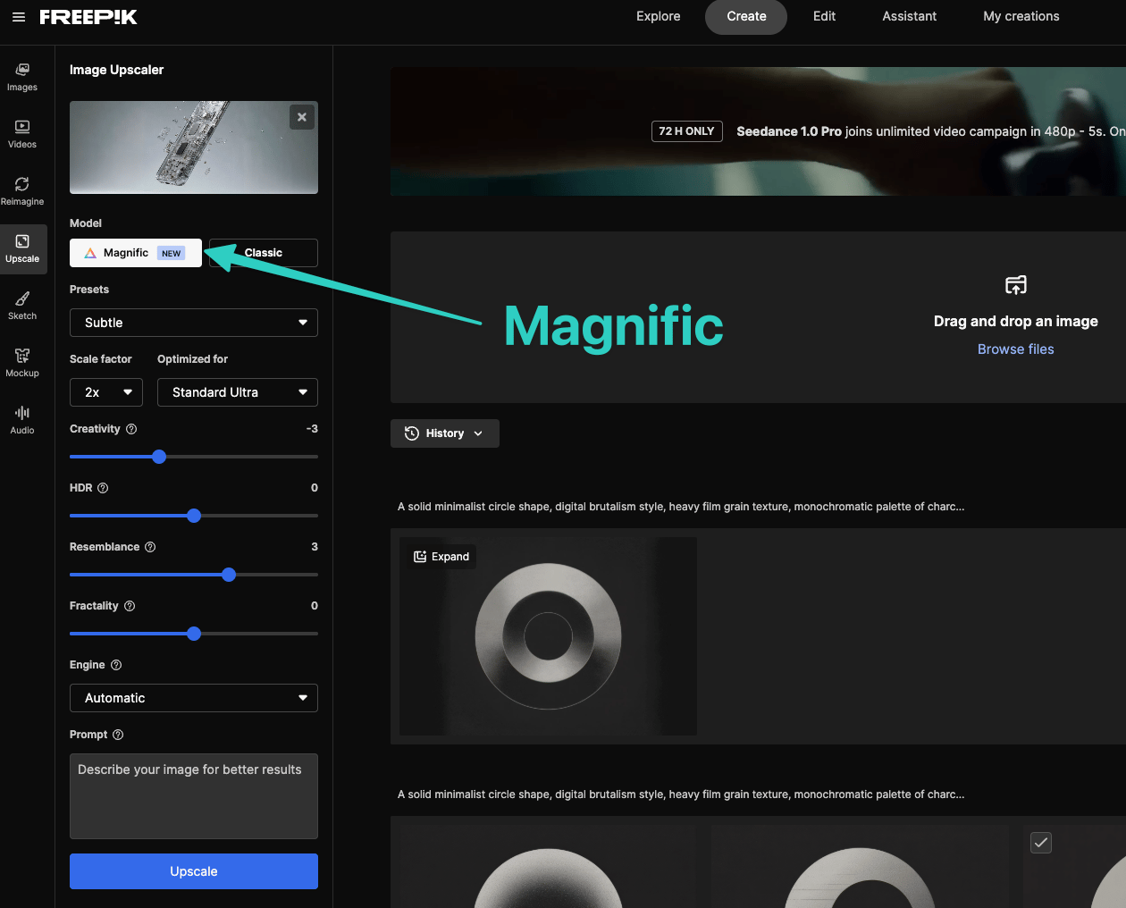 Upscale with Magnific: To enhance fine details, use the Magnific tool to upscale the image.