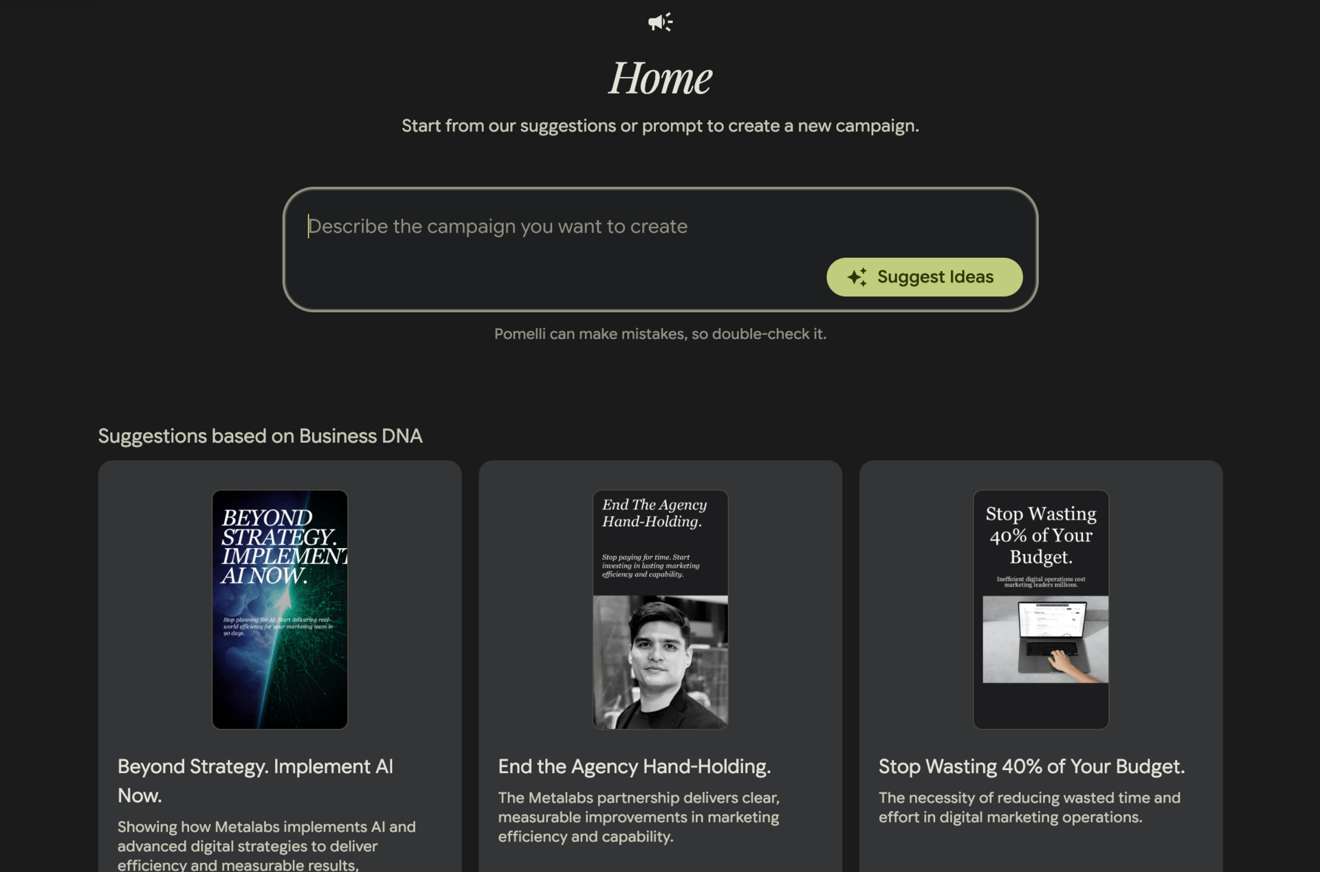 Now tell Pomelli what kind of campaign you need. Click "Create Campaign".
