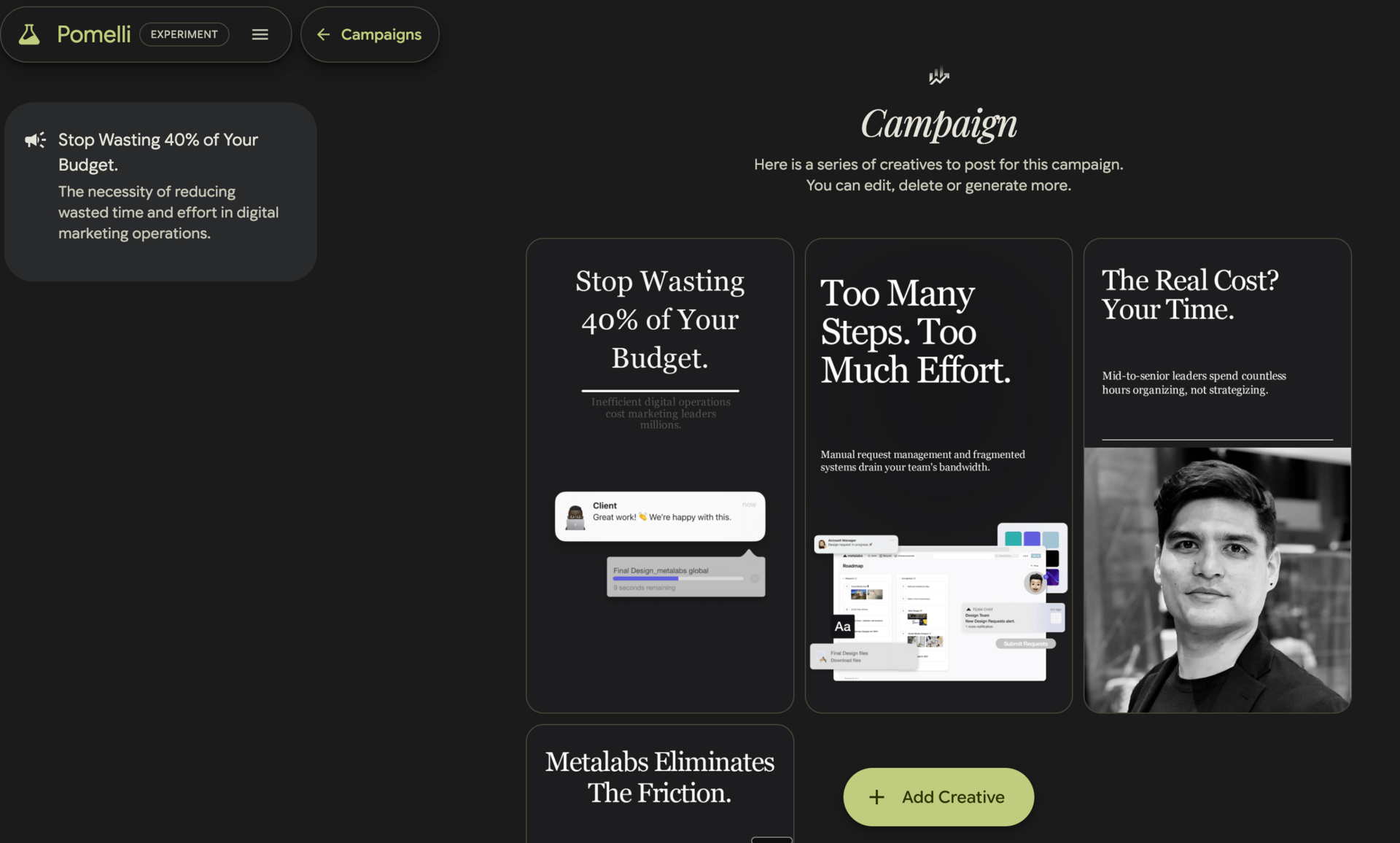 Solution: Use Pomelli to generate brand-aligned campaign options rapidly, then refine based on client feedback.