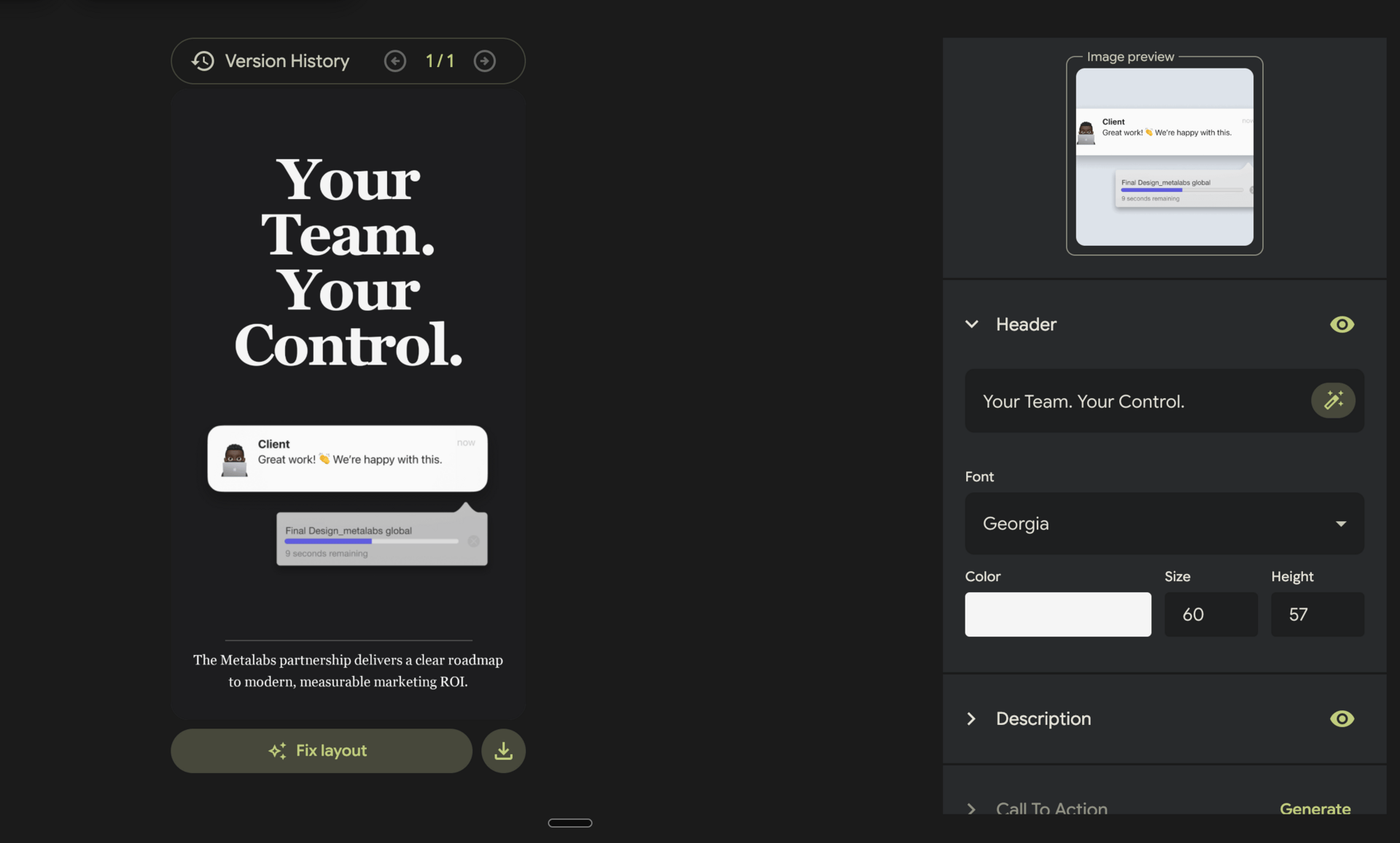 Regenerate visuals: If the suggested image doesn't fit, ask Pomelli to generate alternatives.