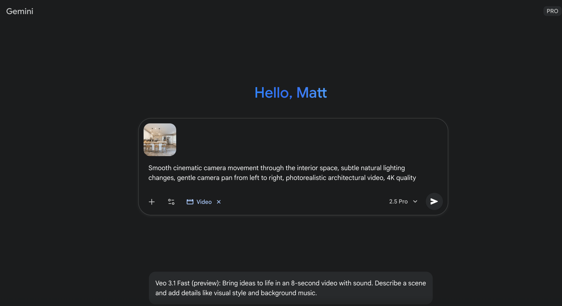 Want to bring your static interior image to life? Google’s VEO 3.1 can transform your upscaled image into a realistic video.